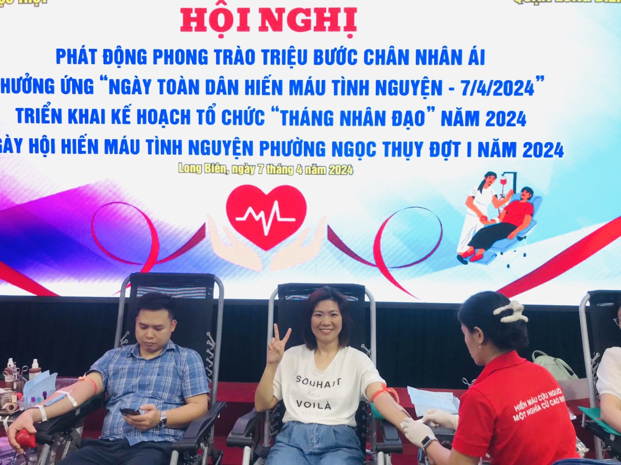 Sáng Chủ nhật, ngày 7/4/2024 vừa qua, cô nhân viên y tế Nguyễn Thị Minh Thu và thầy giáo Đào Văn Thành đã tham gia hiến máu trong “Ngày toàn dân hiến máu - 7/4/2024” do UBND phường Ngọc Thuỵ tổ chức.