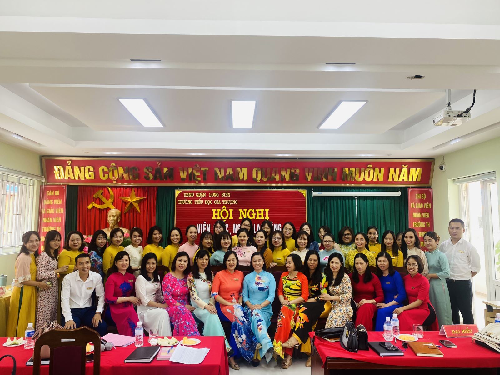 Thực hiện công văn hướng dẫn số 07/HD-LĐLĐ ngày 15/8/2022 của Liên đoàn Lao động quận Long Biên về việc tổ chức Hội nghị Viên chức, người lao động khối trường học năm học 2022 – 2023, sáng ngày 7/10/2022, trường Tiểu học Gia Thượng đã tổ chức Hội nghị viên chức, Người lao động năm học 2022 – 2023.