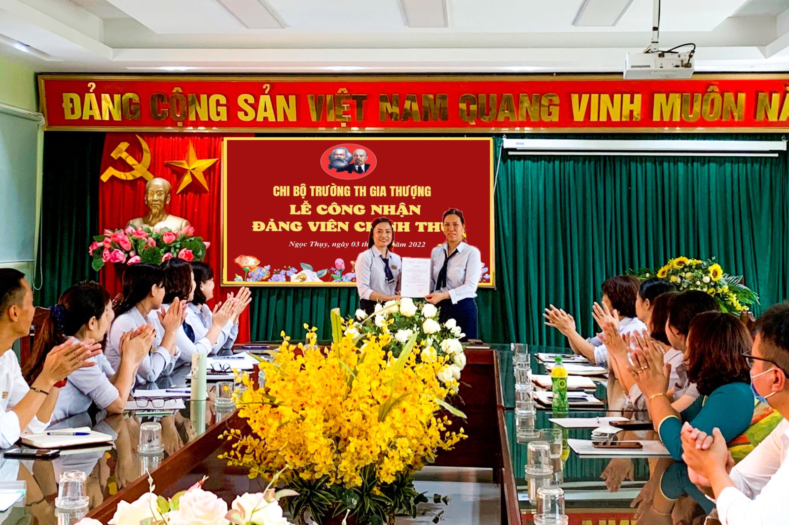 Thực hiện theo quyết định số 968-QĐ/QU của Quận uỷ Long Biên, Chi bộ trường Tiểu học Gia Thượng đã tổ chức Lễ công nhận Đảng viên chính thức cho đồng chí Vương Thị Hồng Điệp.