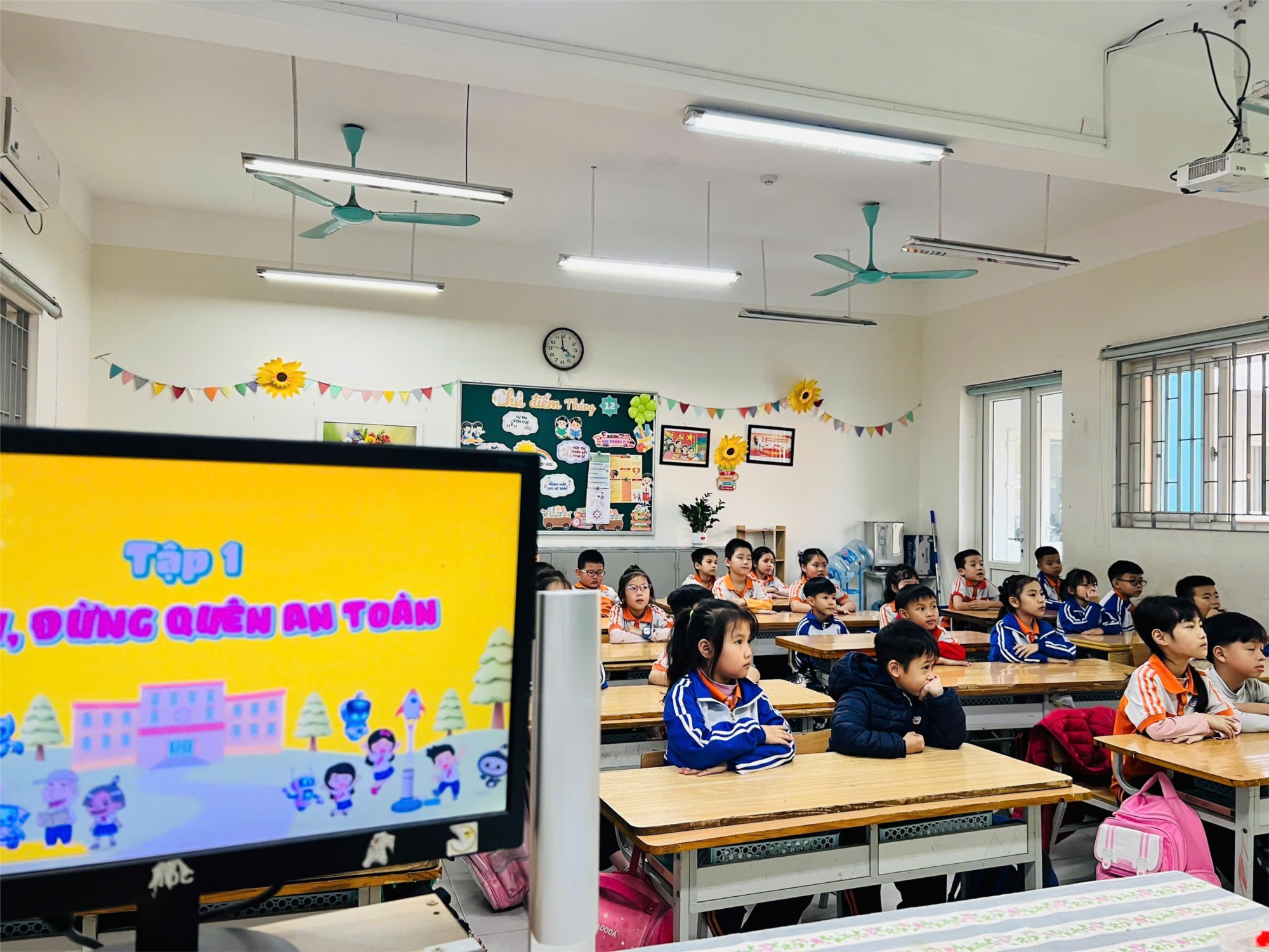 trình xem video, học sinh các lớp đều thể hiện sự hào hứng, chăm chú theo dõi