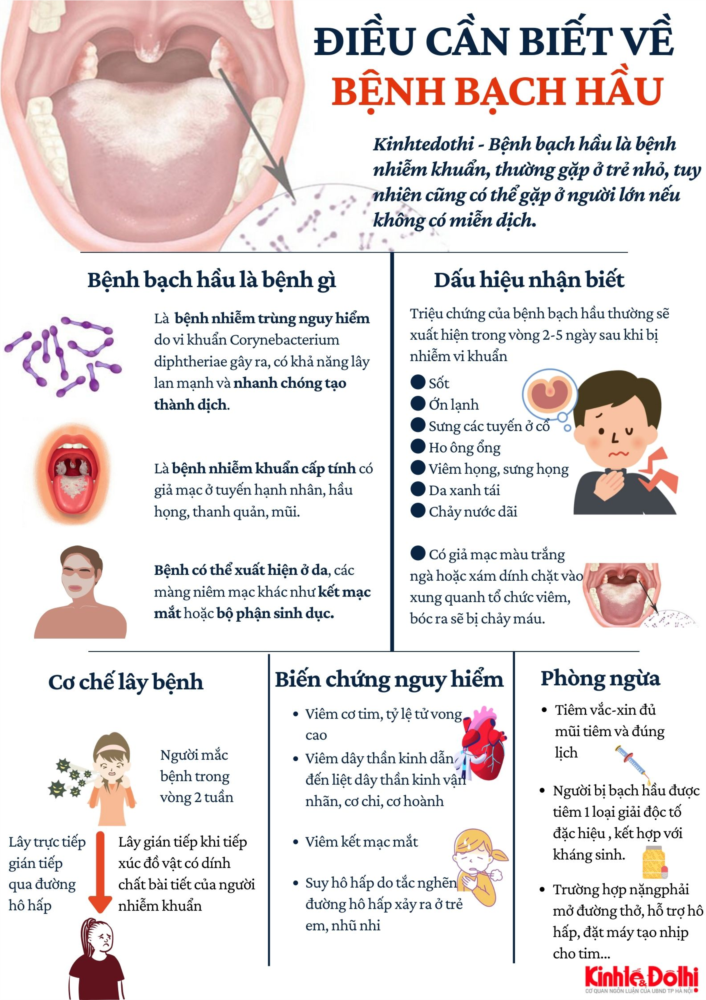 Bệnh bạch hầu là bệnh nhiễm khuẩn cấp tính có giả mạc ở tuyến hạnh nhân, hầu họng, thanh quản, mũi. Bệnh có thể xuất hiện ở da, các màng niêm mạc khác như kết mạc mắt hoặc bộ phận sinh dục.