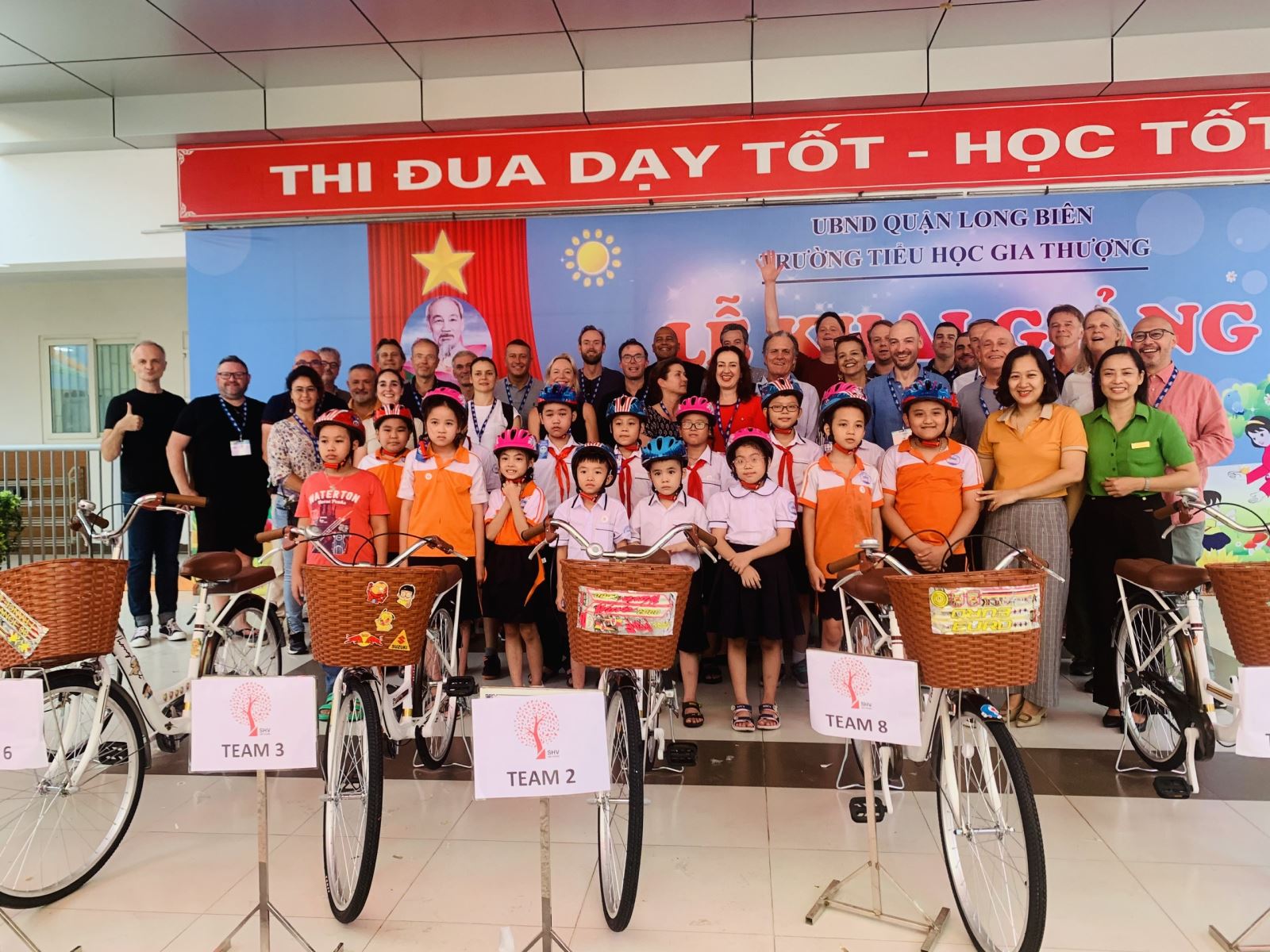 Với niềm yêu mến đất nước, con người Việt Nam, ngay từ lần đầu đặt chân, với tấm lòng hảo tâm và mong muốn góp một phần nhỏ bé giúp đỡ những bạn nhỏ Việt Nam, đoàn du lịch khách nước ngoài gồm 36 thành viên đến từ các nước khác nhau như Anh, Pháp, Hà Lan,...đã đến thăm, trao tặng 08 xe đạp và mũ bảo hiểm cho 8 bạn học sinh có hoàn cảnh đặc biệt của nhà trường. Mong rằng những chiếc xe đạp nhỏ xinh sẽ đồng hành cùng các con trên những nẻo đường mới, đồng hành cùng các con đến trường mỗi ngày. Món quà khích lệ, động viên giúp các con có thêm nhiều động lực để phấn đấu học tập và rèn luyện thật tốt, xứng đáng là cháu ngoan Bác Hồ.