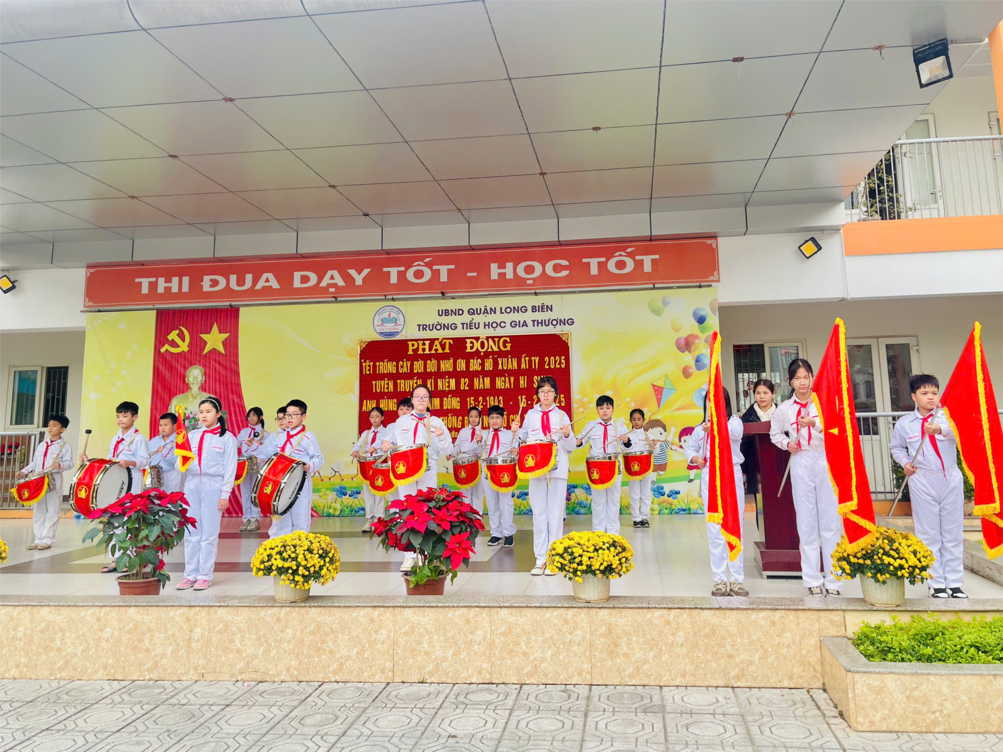 Khi tiếng trống vang lên, toàn trường chúng em