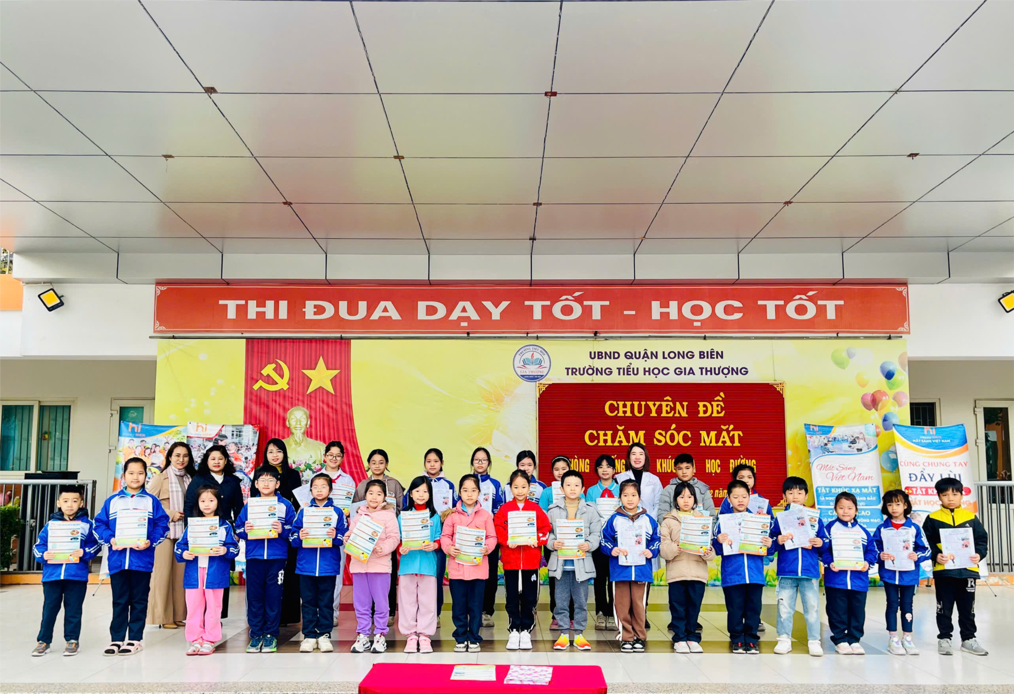 quyết vấn đề này, trường Tiểu học Gia Thượng đã phối hợp với các chuyên gia mắt