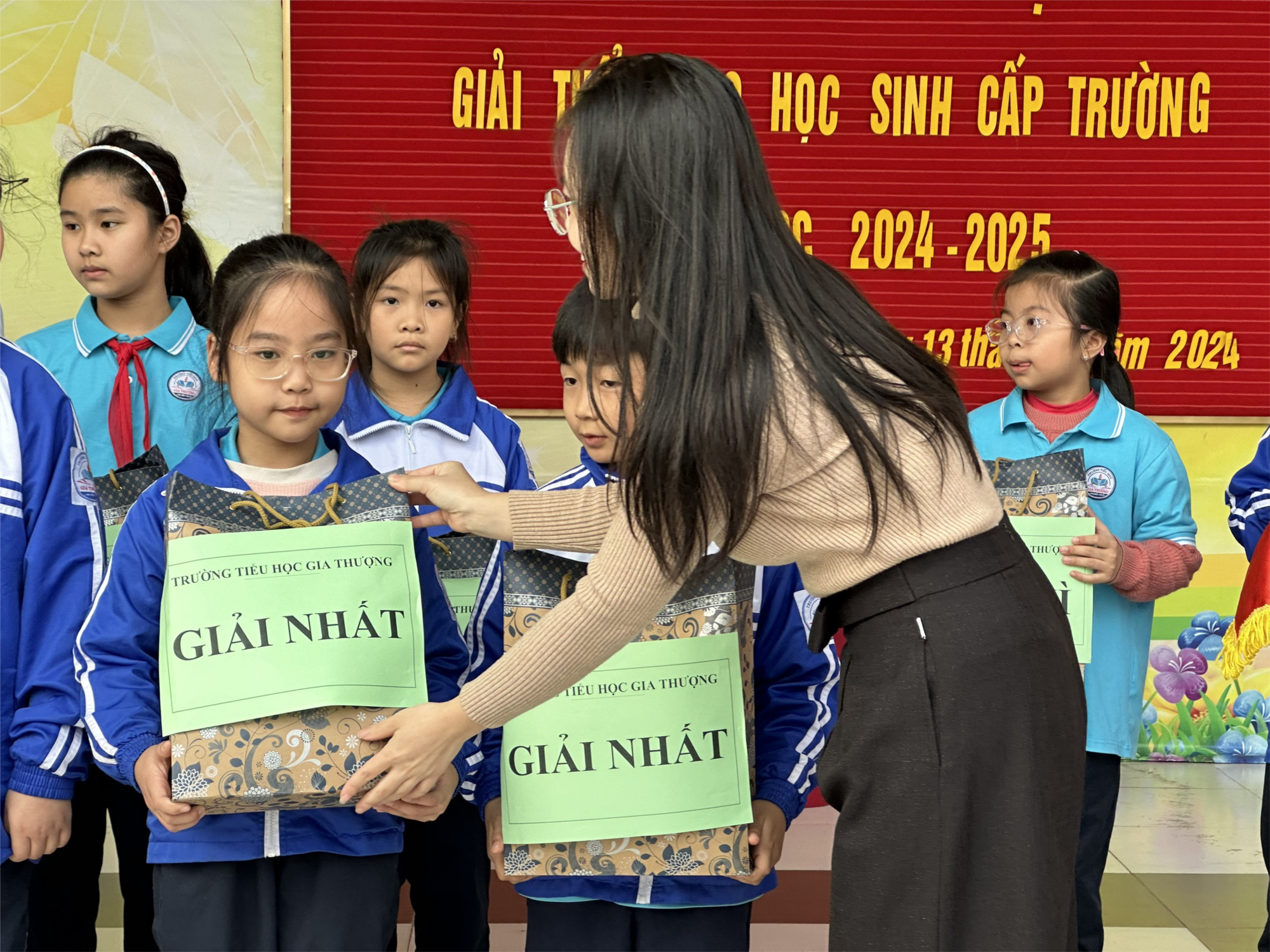 Học sinh nhận thưởng.