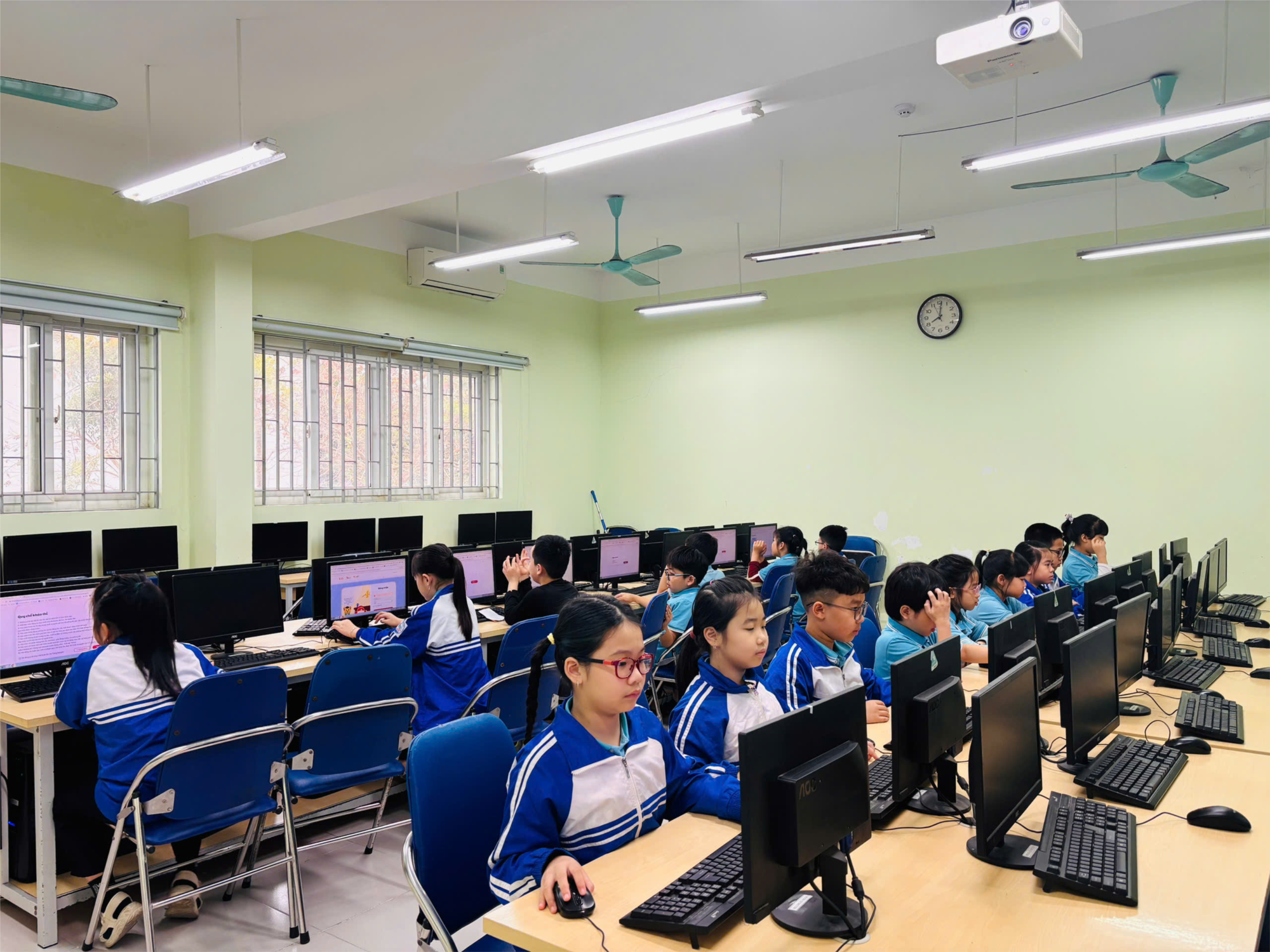 tuyến trong không khí nghiêm túc, tập trung và đầy hào hứng. Trước màn hình máy
