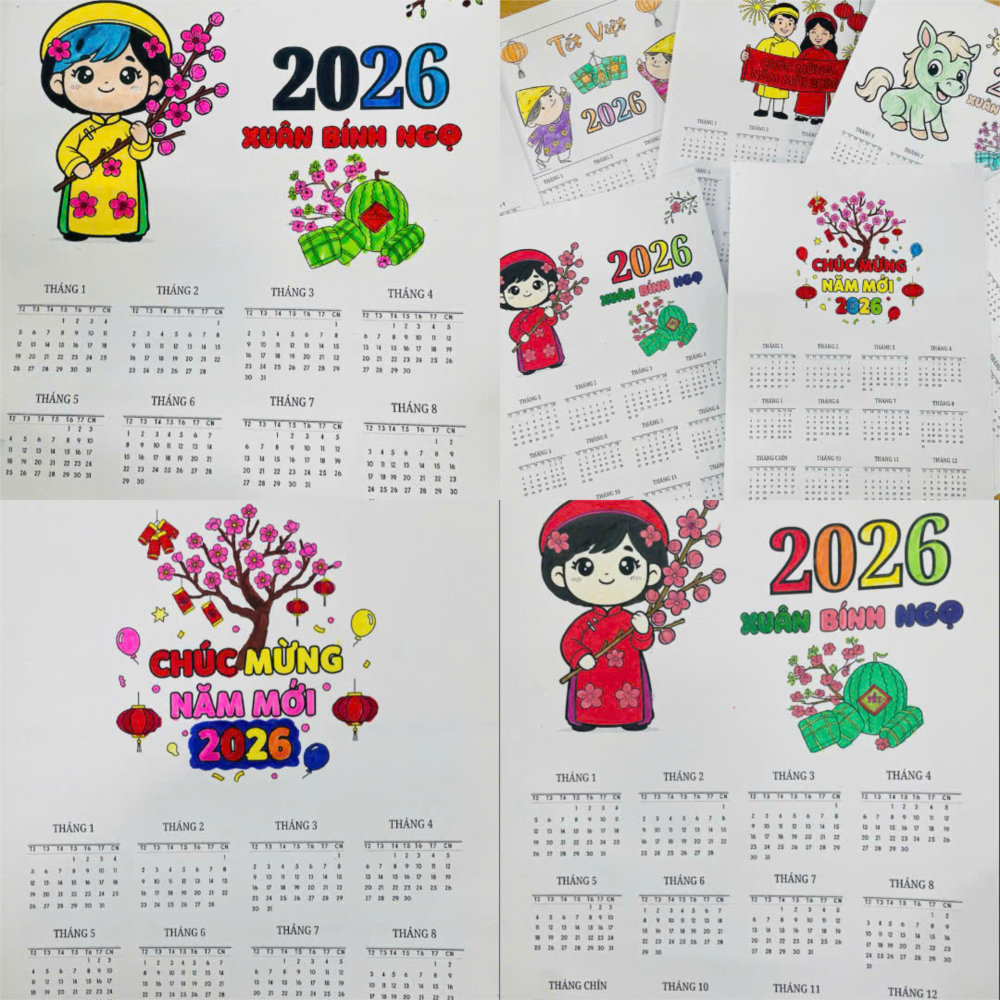 Trên trang lịch, các con học sinh trang trí bằng những hình ảnh đáng yêu, màu