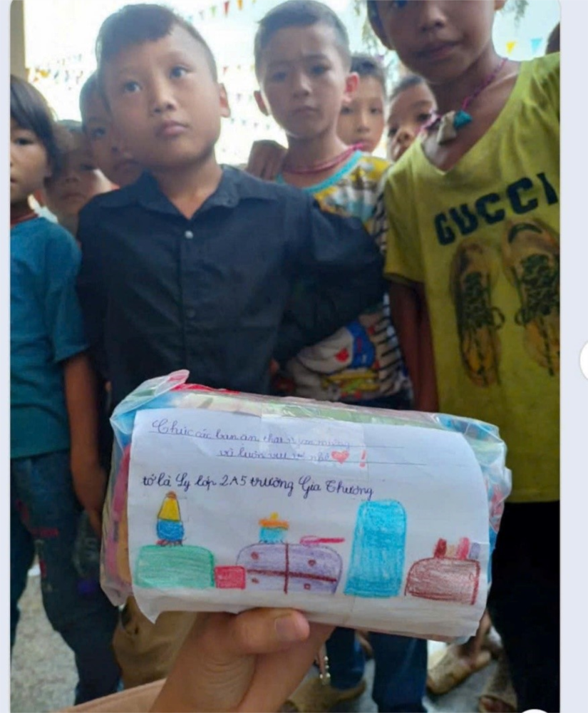 xà phòng mới tinh,… đến lớp ủng hộ gửi tặng những bạn nhỏ khó khăn vùng bão