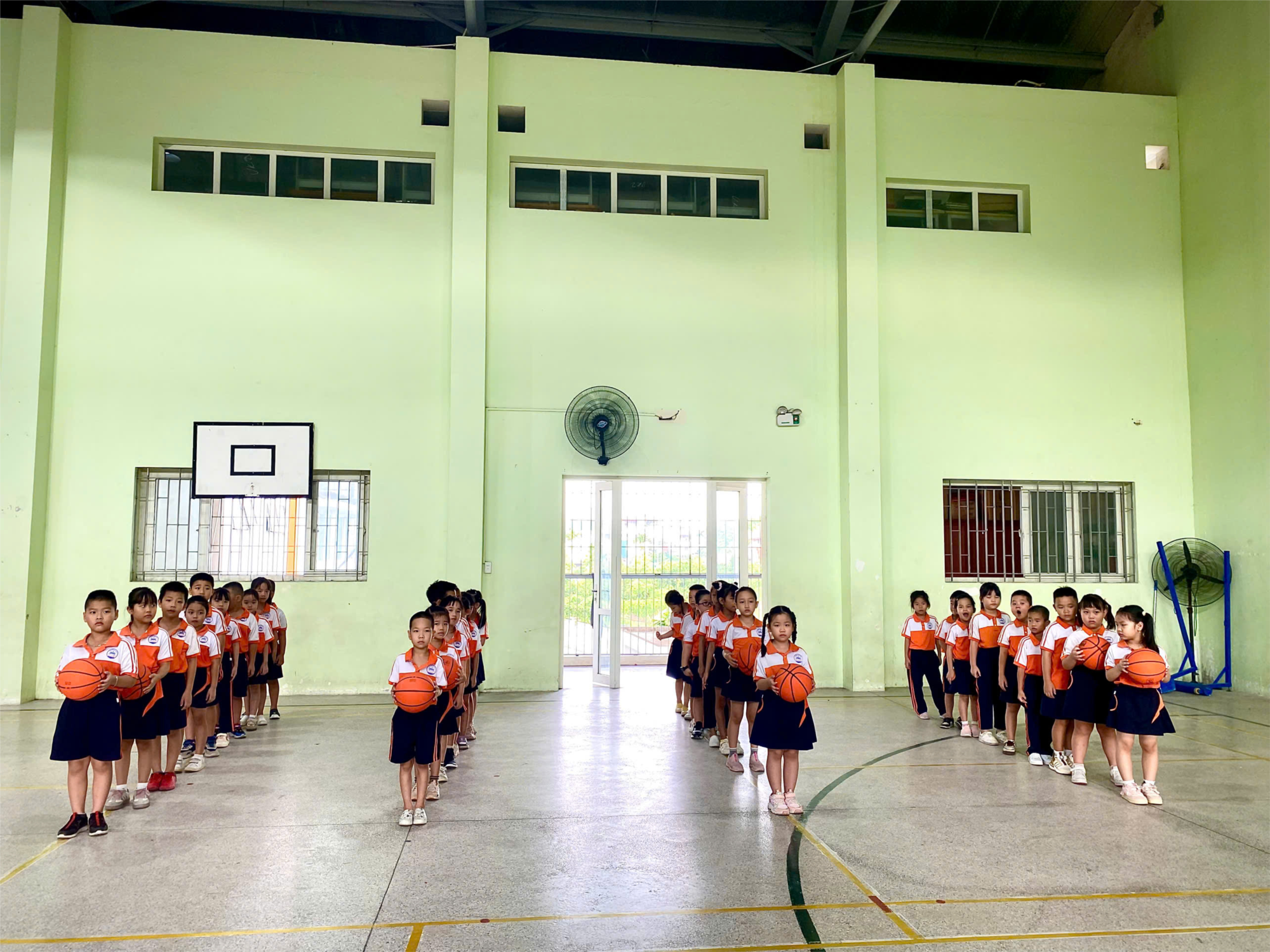 Các buổi tập luyện được tổ chức đều đặn hai buổi mỗi tuần ngay tại nhà thể chất của trường. Với phương pháp giảng dạy hiện đại, phù hợp với lứa tuổi tiểu học, các thầy cô đã giúp các em dễ dàng tiếp cận với môn bóng rổ thông qua các bài tập cơ bản như: dẫn bóng, chuyền bóng, ném rổ, phòng thủ và thi đấu mini game. Chỉ sau vài buổi, các em học sinh lớp 2A1 đã tiến bộ rõ rệt, từ những bước chạy ban đầu còn vụng về đến những cú ném rổ chính xác, đầy tự tin.
