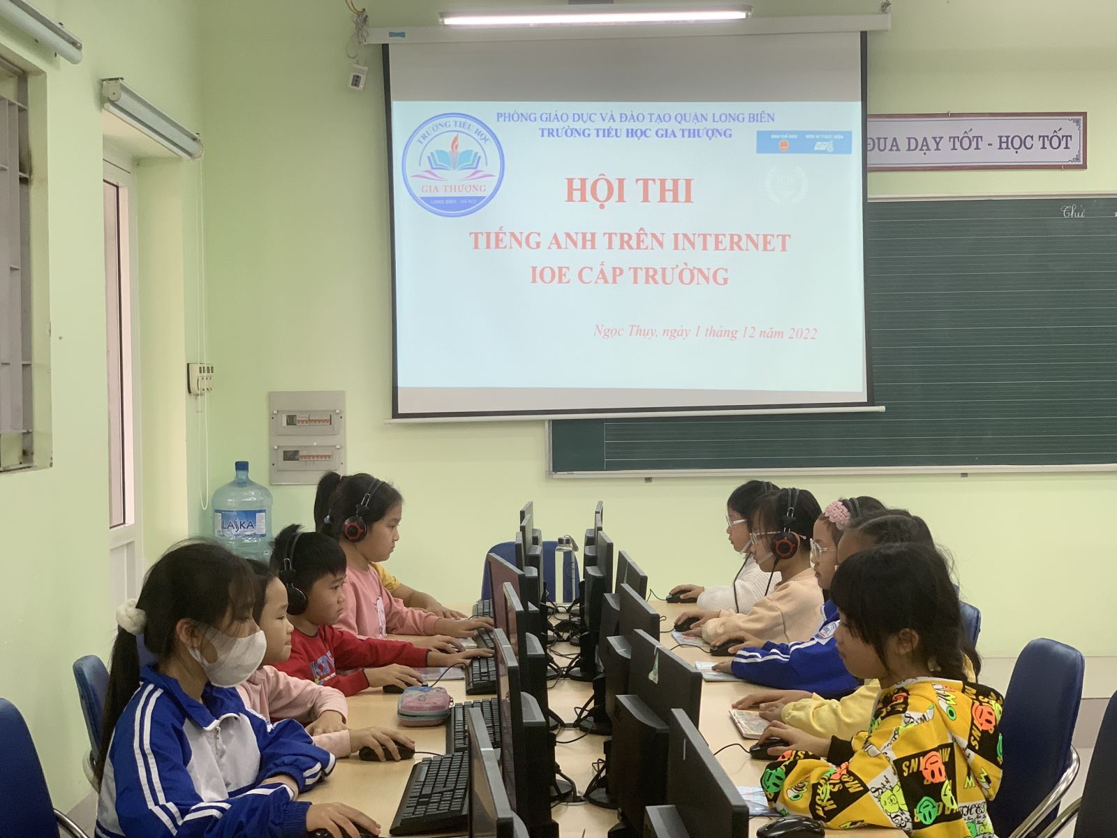 Với mục đích tạo sân chơi Tiếng Anh học sinh toàn trường, 01/12 và 02/12/2022, trường Tiểu học Gia Thượng tổ chức thi Olympic Tiếng Anh trên Internet (IOE) cho học sinh. Tổng số học sinh tham gia cuộc thi IOE cấp trường là 68 em, trong đó khối 3 có 37 em, khối 4 có 11 em và khối 5 có 20 em học sinh.Cuộc thi được thực hiện nghiêm túc, đúng quy chế dưới sự giám sát của Ban Giám hiệu trường, các thầy, cô giám thị và sự tham gia đầy đủ của các em học sinh trường Tiểu học Gia Thượng.