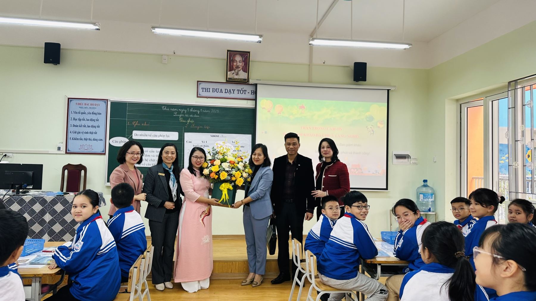 Thực hiện nhiệm vụ năm học 2022-2023; thực hiện kế hoạch số 38/KH-PDG&ĐT quận Long Biên ngày 1/12/2022 về việc tổ chức thi giáo viên dạy giỏi cấp Tiểu học năm học 2022 – 2023; ngày 5/1/2023, hai cô giáo Đỗ Thị Hồng Ngọc và cô giáo Lê Phương Hoa đã tham gia dự thi thực hành giáo viên giỏi cấp Quận.