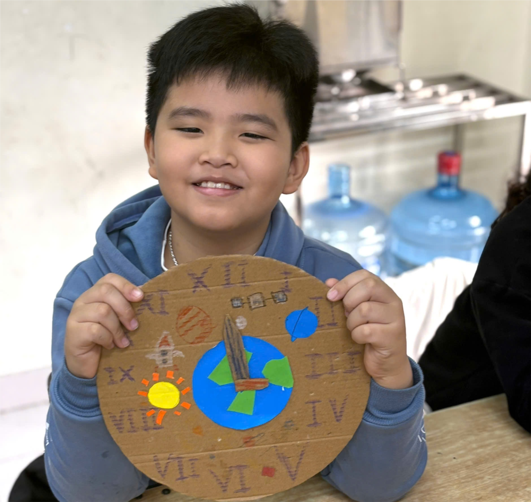 học sinh được chia nhóm để cùng nhau thiết kế và làm mô hình đồng hồ từ các vật