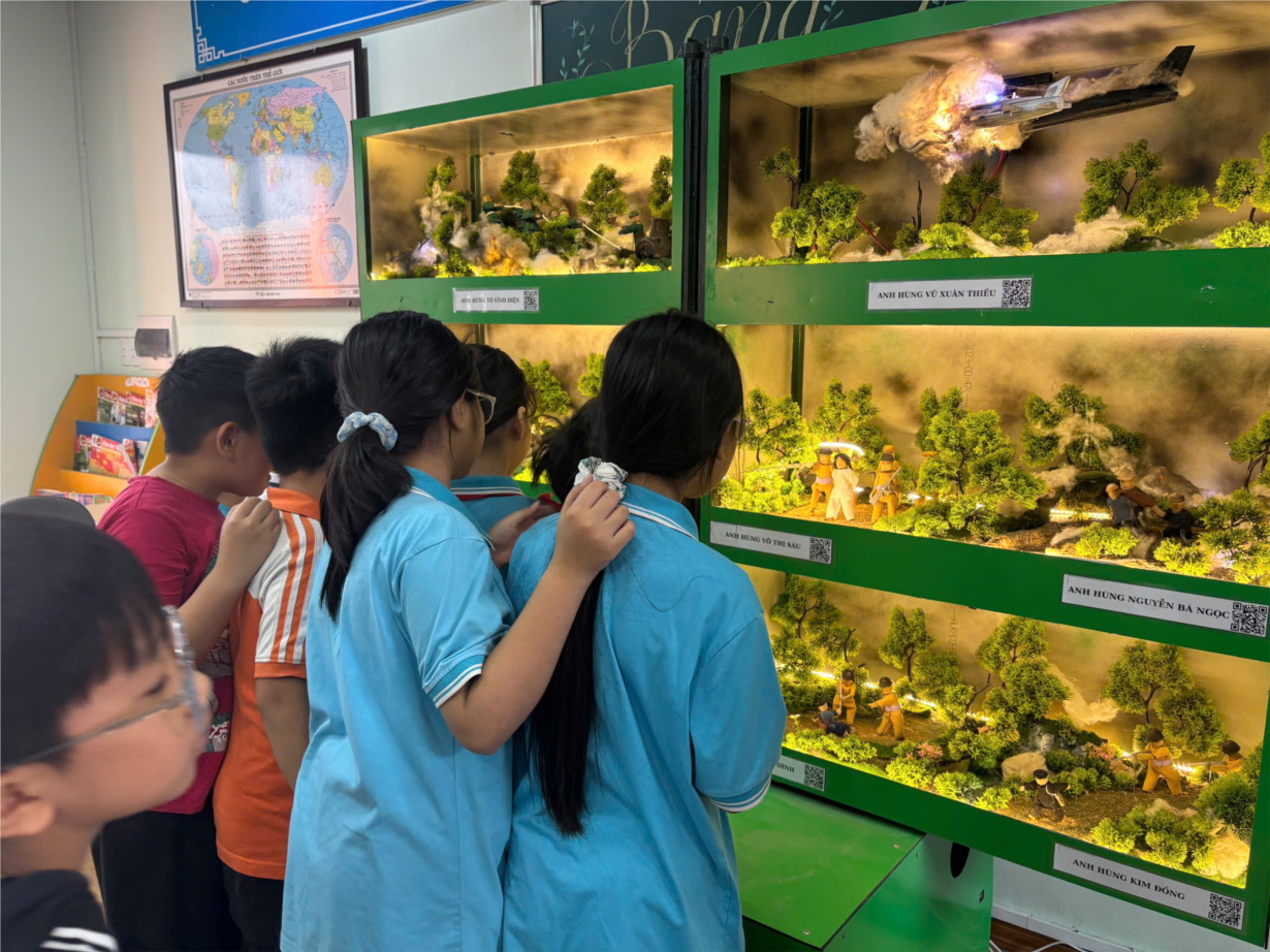 Học sinh tham quan mô hình "Sáng mãi gương anh hùng dân tộc"