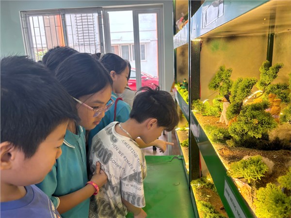 Học sinh tham quan mô hình "Sáng mãi gương anh hùng dân tộc"