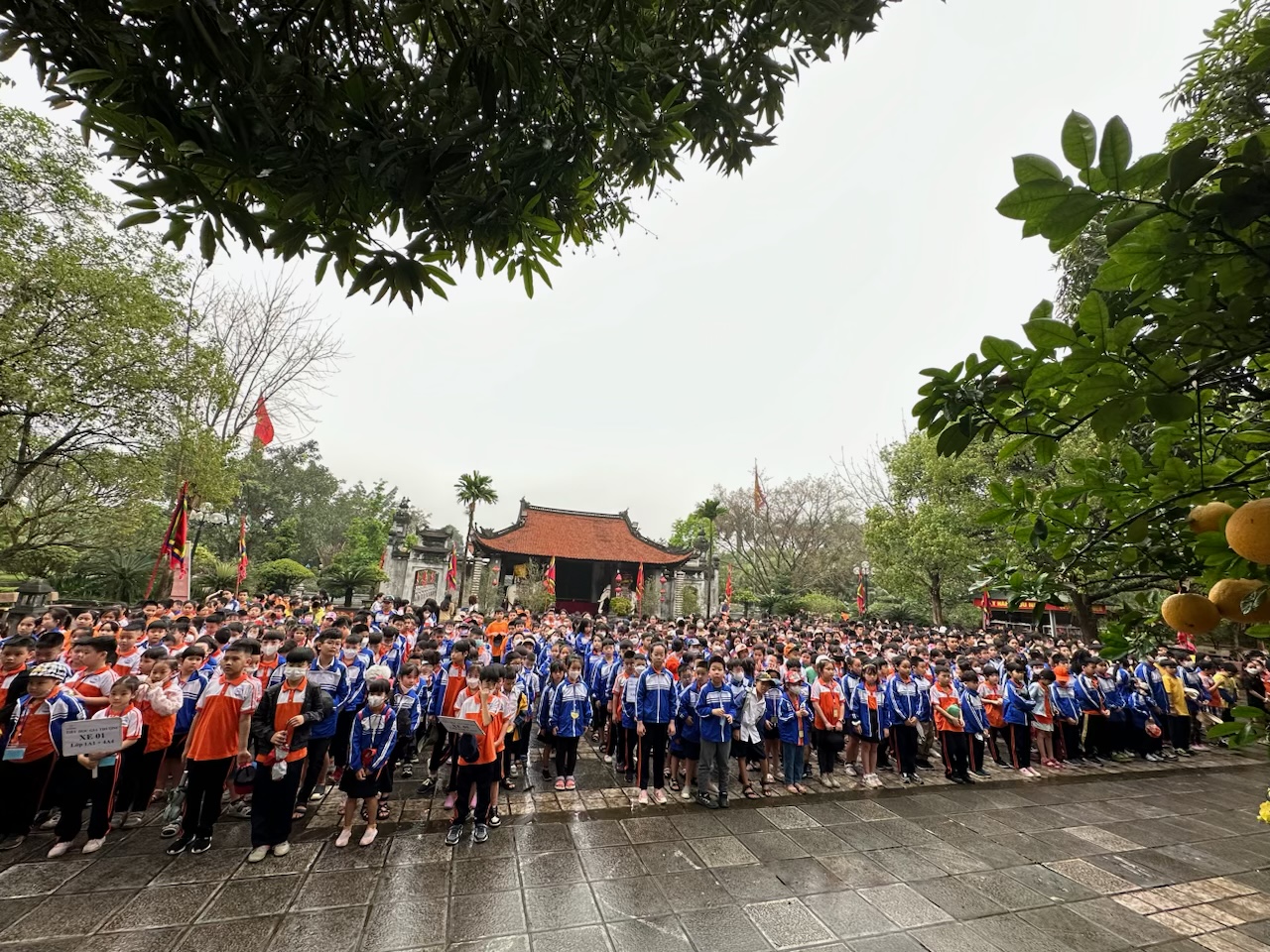 Học sinh tham gia lễ dâng dương tại đền thờ Hai Bà Trưng