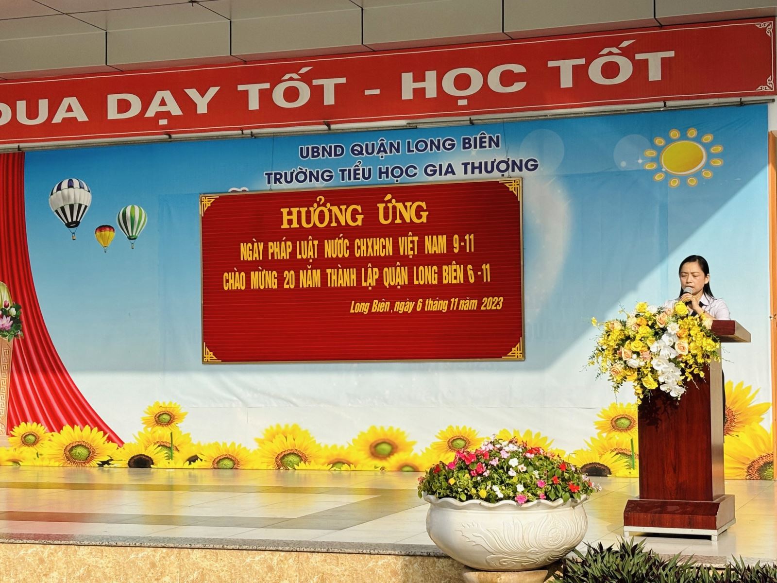 Thực hiện Công văn số 182/PGD&ĐT ngày 4 tháng 10 năm 2023 của Phòng GD&ĐT quận Long Biên về việc tổ chức hưởng ứng “Ngày pháp luật nước Cộng hòa XHCN Việt Nam” trong ngành GD&ĐT năm 2023, sáng ngày 6 tháng 11 năm 2023, trường TH Gia Thượng đã tổ chức tuyên truyền giáo dục pháp luật hưởng ứng ngày Pháp luật nước CHXHCN Việt Nam năm 2023.