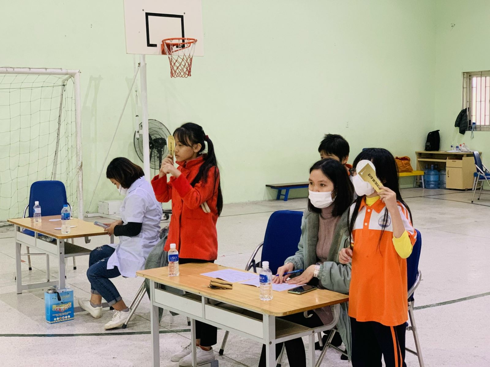 Trong buổi khám sức khỏe, các học sinh được khám đầy đủ các chuyên khoa như Mắt, Tai mũi họng, Cân nặng, Chiều cao, Cơ xương khớp, Khám tổng quát..