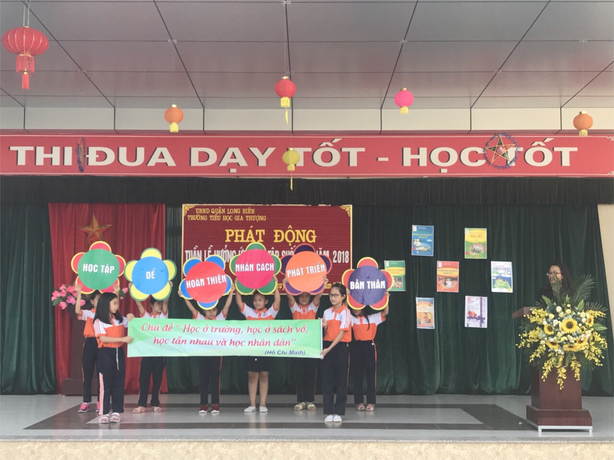 Thực hiện công văn số 3636/BGD&ĐT-GDTX ngày 31/8/2018 của Bộ Giáo dục và Đào tạo; Kế hoạch số 3836/KH-BCĐ ngày 13/9/2018 của Ban chỉ đạo xây dựng XHHT Thành phố Hà Nội và công văn số 3008/SGD&ĐT-GDTX ngày 11/9/2018 của Sở GD&ĐT Hà Nội về việc Hướng dẫn tổ chức Tuần lễ hưởng ứng học tập suốt đời năm 2018, chiều ngày 1/10/2018, trường Tiểu học Gia Thượng đã tổ chức phát động “Tuần lễ hưởng ứng học tập suốt đời”.
