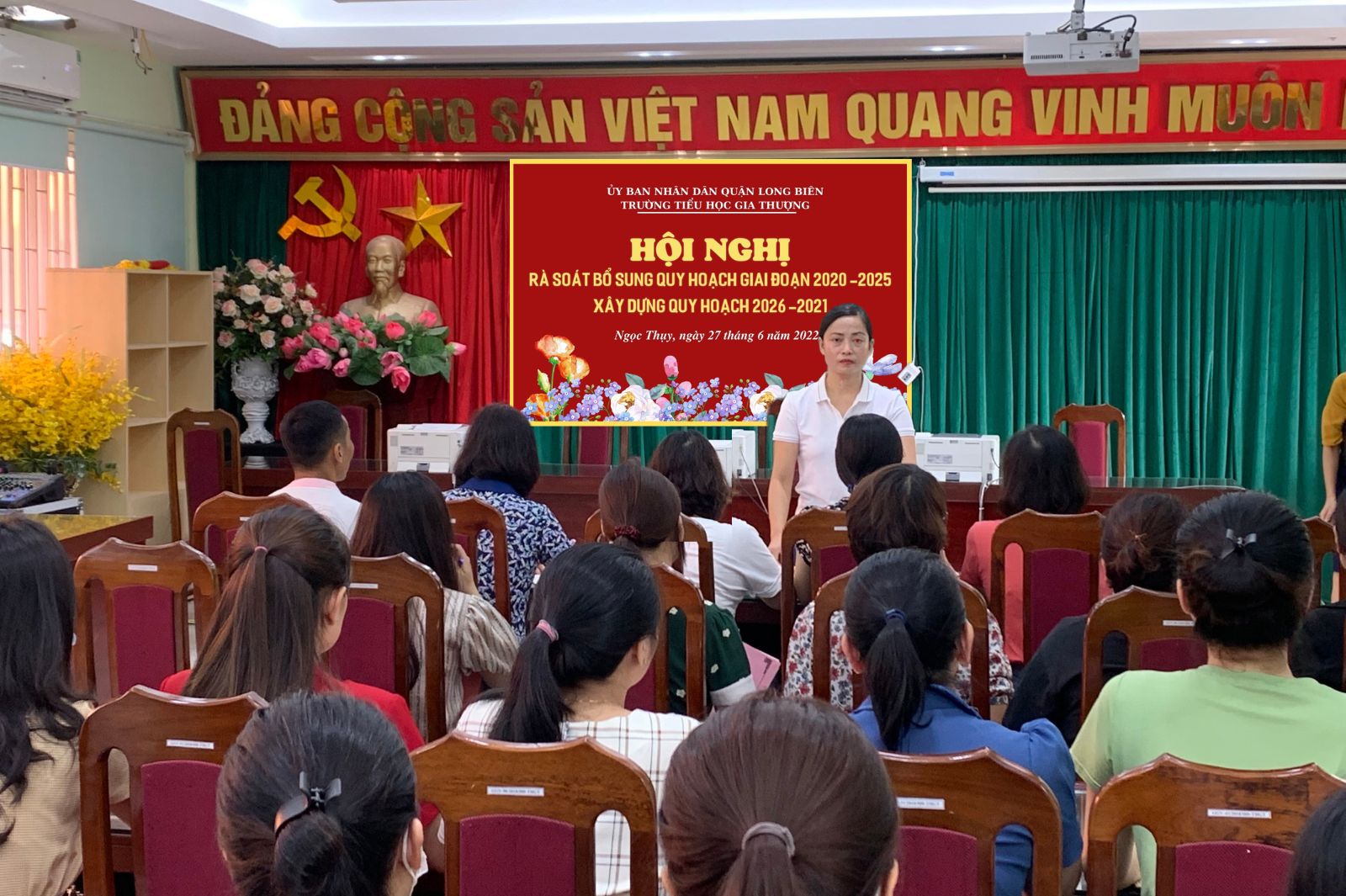 Thực hiện công văn số 154/NV-GD v/v rà soát bổ sung quy hoạch giai đoạn 2020-2025, xây dựng quy hoạch giai đoạn 2026-2031 ngày 20/6/2022 của UBND quận Long Biên. Sáng ngày 27/6/2022, đồng chí Nguyễn Thị Yến - Bí thư chi bộ - Hiệu trưởng trường Tiểu học Gia Thượng chủ trì Hội nghị toàn thể viên chức – LĐHĐ 68 để thực hiện quy trình phát hiện, giới thiệu quy hoạch CBQL trường học, nhiệm kỳ 2025 – 2030 và nhiệm kỳ 2026 – 2031.