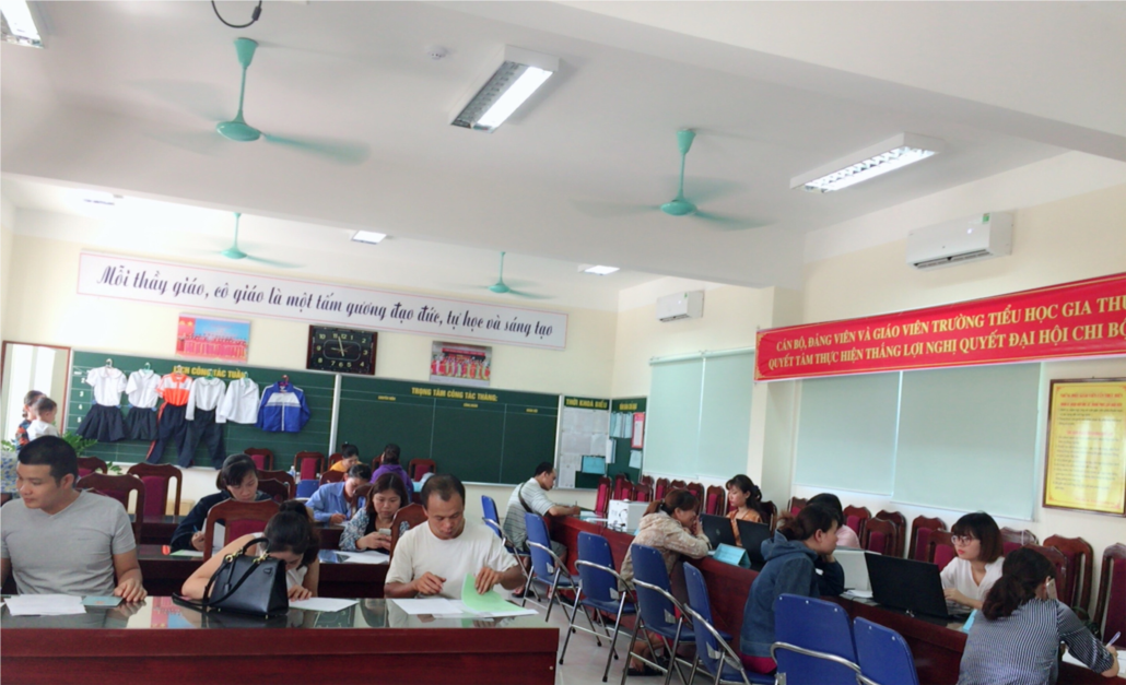 Bắt đầu từ ngày 1/7/2018, nhà trường đón tiếp CMHS đến đăng kí trực tuyến và đối chiếu hồ sơ. Dưới sự hướng dẫn nhiệt tình của các cô giáo trong nhà trường, CMHS dễ dàng, nhanh chóng đăng kí trực tuyến và đối chiếu hồ sơ cho con.